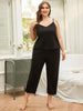 Cet élégant ensemble pyjama est parfait pour les femmes rondes. Il présente un décolleté en V et une coupe sans manches avec bordure en dentelle. Confectionné dans un mélange de polyester, viscose et élasthanne, il est légèrement extensible pour un confort optimal. Son style minimaliste et son motif uni lui confèrent un look chic et raffiné.