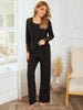 Unwind in elegance with our Lace Detail Long Sleeve Top and Pants Lounge Set. This two-piece set blends comfort and sophistication, featuring delicate lace accents that elevate your everyday loungewear.