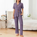 Relax in effortless comfort with this two-piece lounge set featuring a button-down long sleeve top and matching pants.