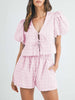 .Add a touch of charm to your relaxation routine with our V-Neck Puff Sleeve Lounge Set.