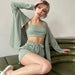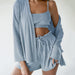 Relax in style with this 3-Piece Ice Silk Pyjama Loungewear Set, featuring a wrap top, short, and lightweight layer.