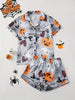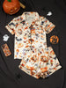 Two-piece Halloween pajama set: short-sleeve top and matching shorts